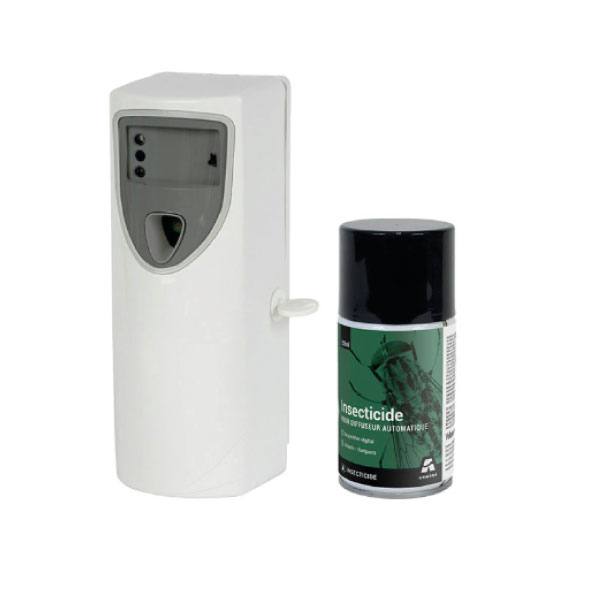 Diffuseur programmable pour aérosols insecticides ou répulsifs. Permet une diffusion régulière et autonome dans vos espaces.
