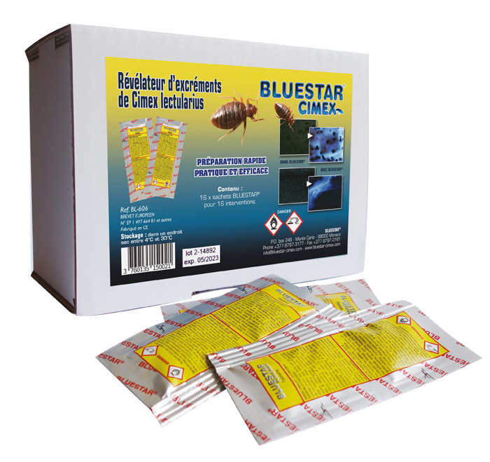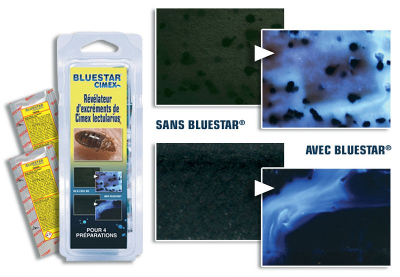 Kit de 16 doses à diluer pour détecter les excréments de punaises de lit. Met en évidence la présence d’hémoglobine par réaction bleue luminescente.